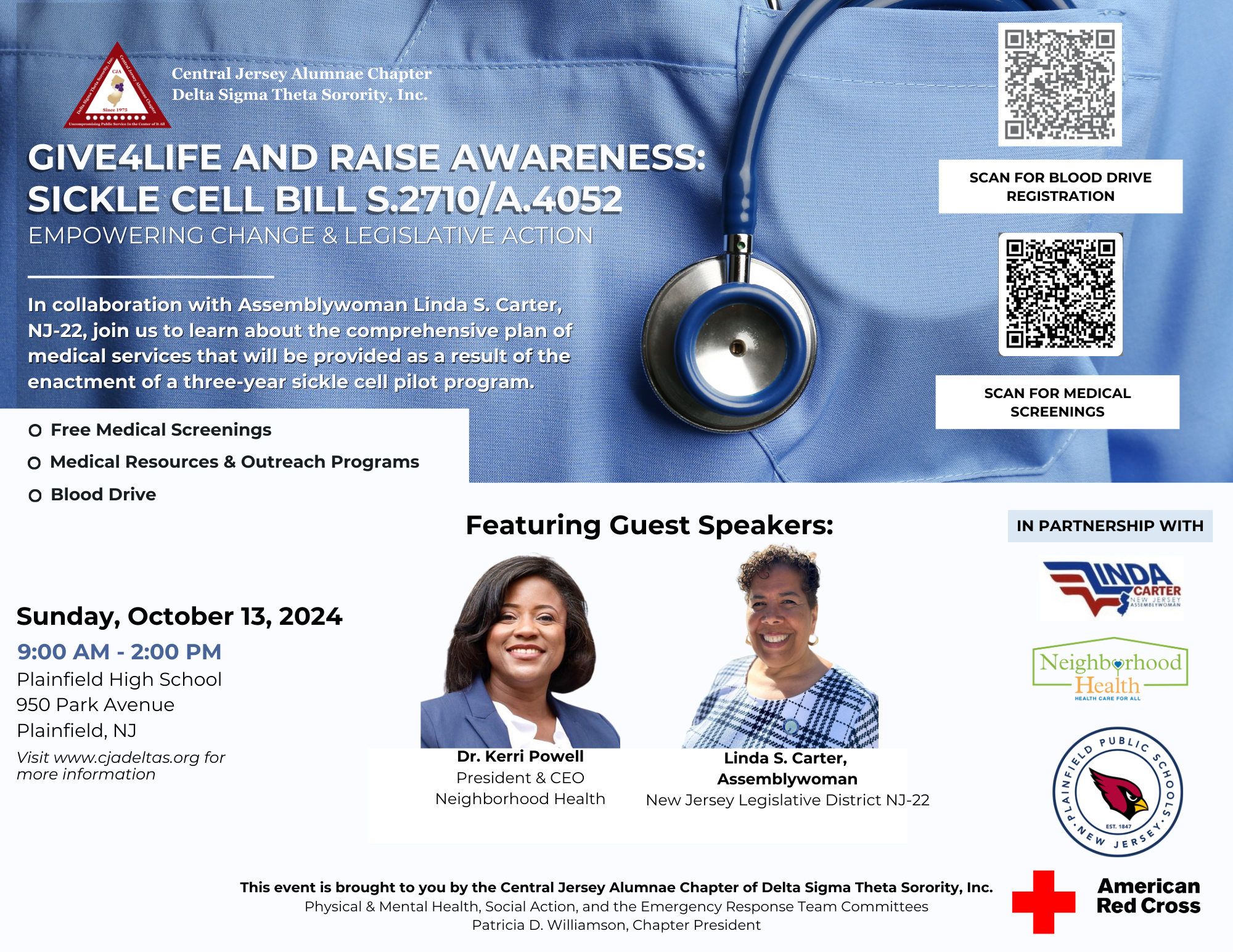 GIve4life and raise awareness: Sickle Cell Bill S.2710/A.4052 - Central Jersey Alumnae Chapter of Delta Sigma Theta Sorority, Incorporated